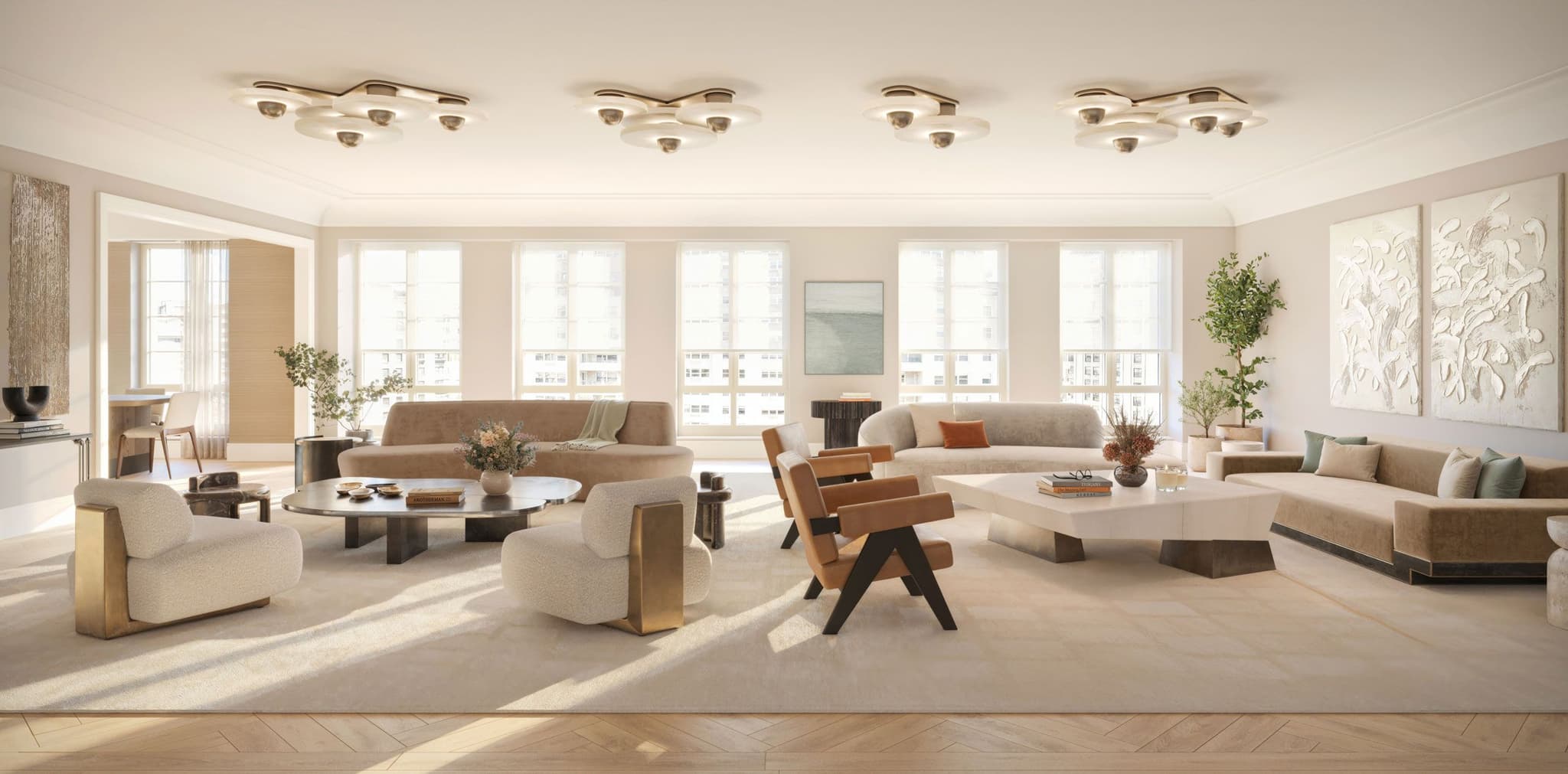 "THE ENFILADE IS A TECHNIQUE USED IN FRENCH PALACES. WE’RE THRILLED THAT WE COULD ALIGN THE PUBLIC ROOMS OF SIXTEEN FIFTH AVENUE’S RESIDENCES TO THAT EFFECT. AN ENFILADE HAS GREAT DRAMA, AND FROM THE PERSPECTIVE OF A HOMEOWNER OR GUEST, IT IS A GREAT PLEASURE TO LOOK ACROSS ONE ROOM TO THE ADJACENT SPACE."